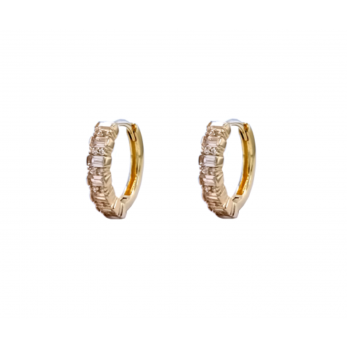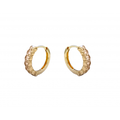 Zlaté dámské náušnice zlamovací kroužky ze žlutého zlata. Zlaté náušnice opticky ve střední velikosti osazené čirými zirkony. Moderní náušnice v jednoduchém designu, které se perfektně hodí na denní nošení.