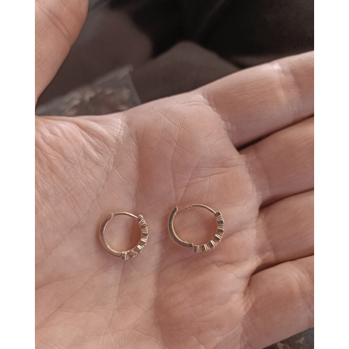 Rozměr: délka (vnější průměr náušnic): 14 mm, vnitřní průměr: 11 mm, šířka: od 2 do 3 mm, váha: 1,88 gr, materiál: ZLATO (585/1000) 14 ti karátové zlato, stav zboží: NOVÉ.