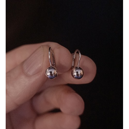 Zlaté decentní dámské visací náušnice kuličky v bílém zlatě celozlatém provedení bez kamínků. Náušnice jsou vyrobené v lesklé povrchové úpravě s klasickém uzávěrem na klapku a opticky působí středně masivně viz rozměry.