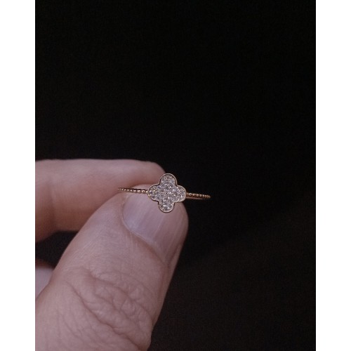 Dámský zlatý prsten čtyřlístek s kamínky AU2062
