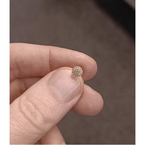 Rozměr zlaté náušnice: průměr cargličky (obruby ve které jsou zasazeny zirkony): 6 mm, váha: 0,63 gr, materiál: ZLATO (585/1000) 14 ti karátové zlato, stav zboží: NOVÉ.