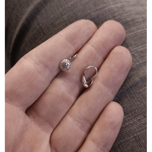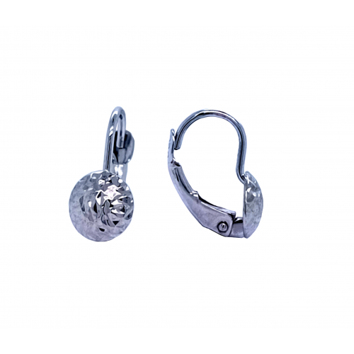 Zlaté dětské nebo dívčí náušnice v bílém zlatě. Zlaté náušničky s uzávěrem na klapku jsou zdobeny ruční rytinou . Prostor pro ucho 7,5 mm.
