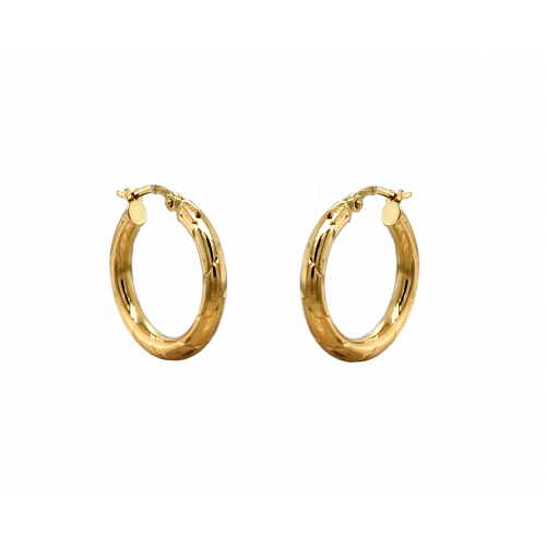 Zlaté dámské náušnice kruhy ve žlutém zlatě v kulatém tvaru. Zlaté náušnice jsou vyrobeny v kombinaci matné a lesklé povrchové úpravy . Zlaté náušnice kroužky ve střední velikosti viz rozměry.