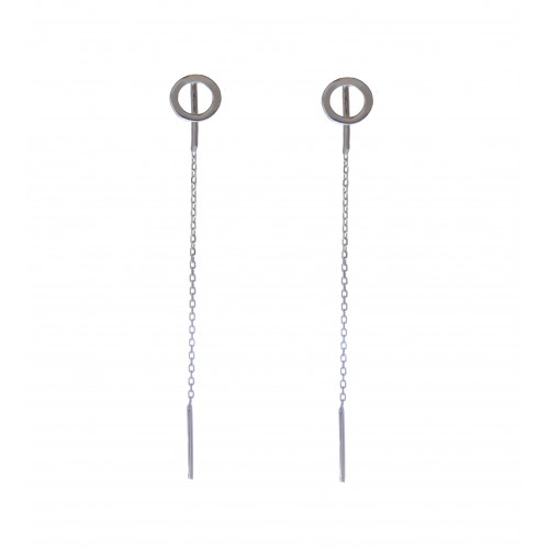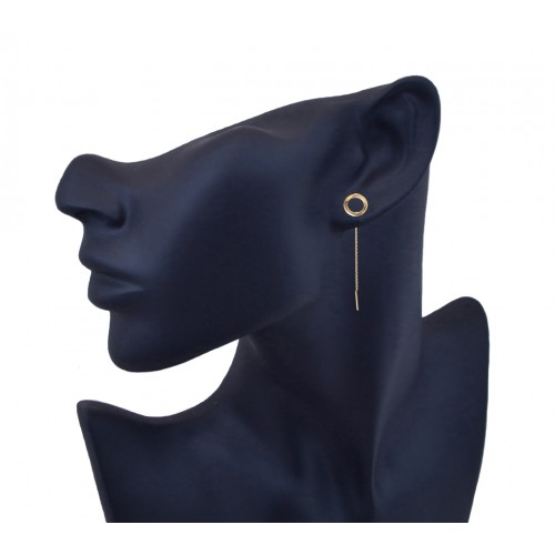 Zlaté řetízkové náušnice bez kamínků na protáhnutí ve žlutém zlatě. Zlaté náušnice prostrčíte uchem a kulatou část náušnice budete mít na uchu a řetízek se zlatým drátem bude viset za uchem.