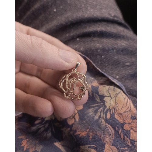 Zlatý přívěsek pes retrívr ze žlutého zlata. Šperk je vhodný do kombinace se středně silným zlatým řetízkem (do 3,5 mm šířky). Přívěsek je ve stavu nového šperku bez známek nošení nebo poškození.