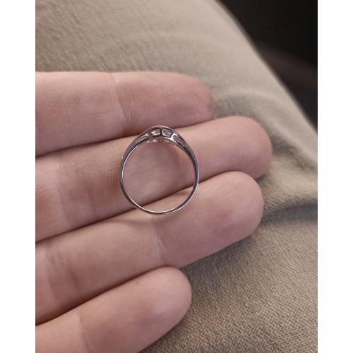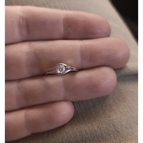 Zlatý dámský prsten osazený čirým zirkonem kulatého brusu o průměru 4,25 mm. Decentní prsten v praktickém designu vyrobený z bílého zlata.