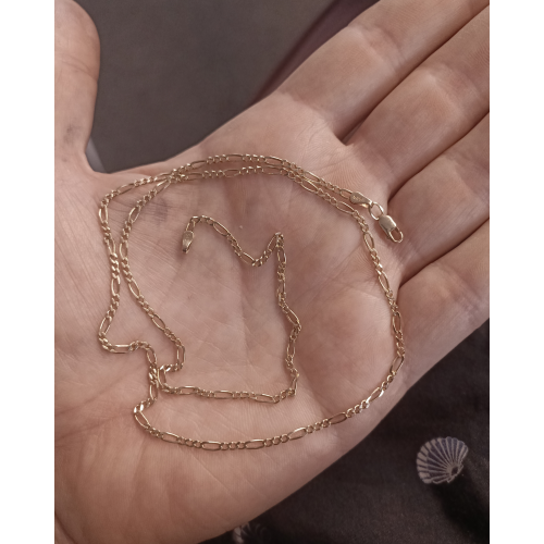 Zlatý plný unisex řetízek figaro 3+1 ve žlutém zlatě. Zlatý řetízek byl nošen, ale je v dobrém stavu bez výrazného poškození. Šperk byl vyroben z plného zlatého drátu a díky tomu vydrží léta.